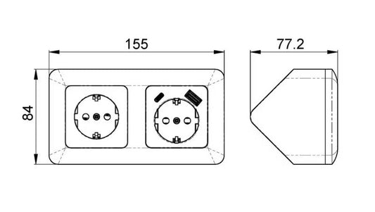 Pistorasia Opal Kulma, 2-osainen, USB A + USB C, musta