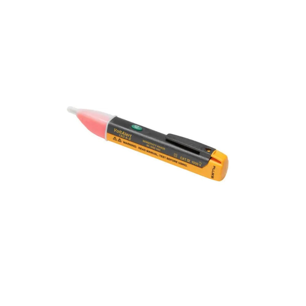Fluke VoltAlert -AC-jännitteenilmaisin on erittäin helppokäyttöinen – sinun tarvitsee vain koskettaa kärjellä kytkentärimaa, pistorasiaa tai johdinta. Jos kärki hehkuu punaisena ja kuulet merkkiäänen, kohde on jännitteinen. Testaa paristoja jatkuvasti ja ilmoittaa siitä säännöllisellä kaksoisvälähdyksellä. Paras turvaluokitus: CAT IV 1000 V