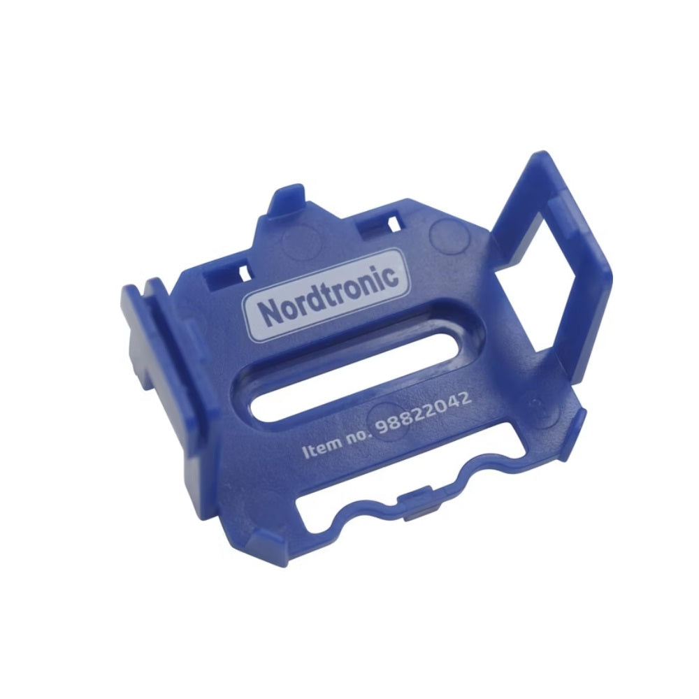 DIN-kiskoadapteri Nordtronicin BOX-sarjan valonsäätimille. Apapterin avulla valonsäädin voidaan asentaa suoraan sähkökeskuksen DIN-kiskoon.