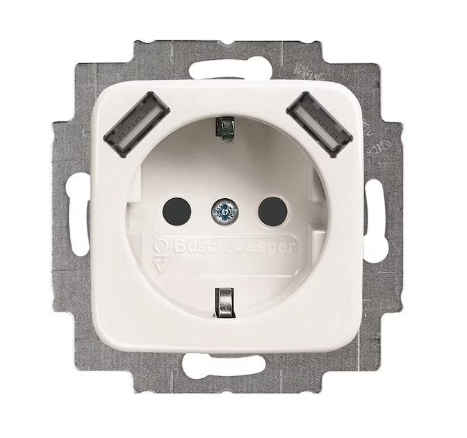 Pistorasia ABB Jussi 1-osainen + 2x USB 16A IP21 UKJ 0x Valkoinen