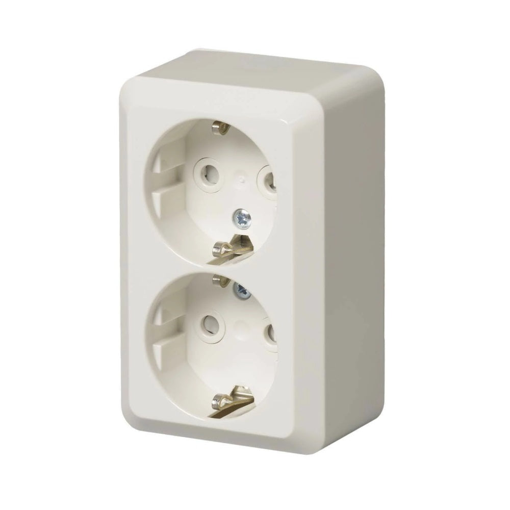 ABB Jussi-sarjan pinta-asennettava 2-osainen pistorasia. Pistorasiassa on liittimet kutakin kosketinta kohden ja niihin voi kytkeä max 4 johtoa (haaroitusmahdollisuus). Liittimet on hyväksytty ML ja MK johtimille. Ei potentiaalivapaita liittimiä. Lapsisuojat on integroitu pistorasian runkoon.