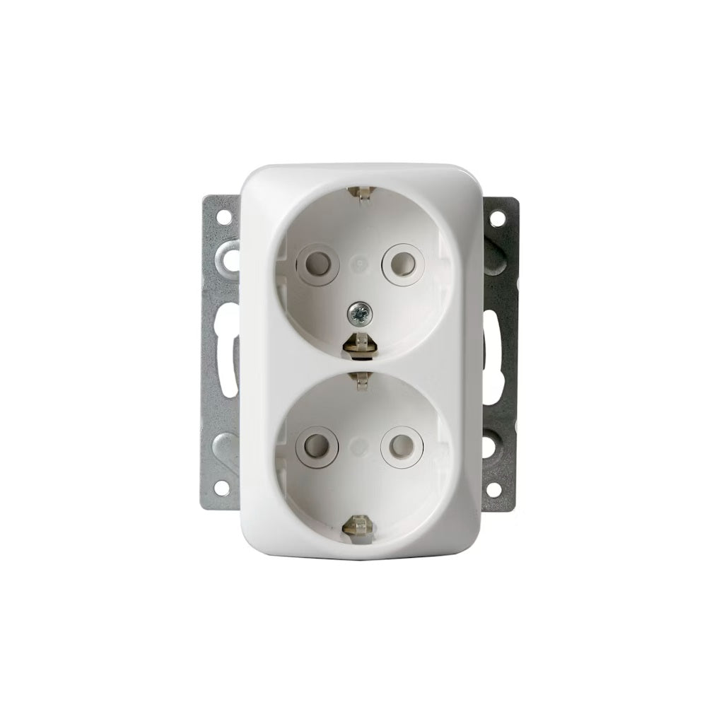 Pistorasiassa on liittimet kutakin kosketinta kohden ja niihin voi kytkeä max 4 johtoa (haaroitusmahdollisuus). Liittimet on hyväksytty ML- ja MK-johtimille. Ei potentiaalivapaita liittimiä. Pistorasian runko on kosketussuojainen ilman peitelevyä.