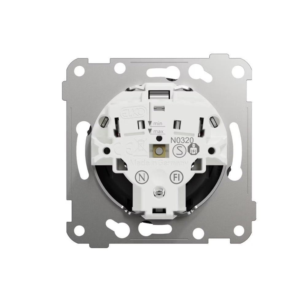 ELKO One keskiölevyllinen 1- pistorasia jousiliittimillä on kehitetty yhdessä sähköasentajien kanssa. Uudistetut jousiliittimet nopeuttavat asennusta ja uudet ergonomiset vapautuspainikkeet helpottavat johtojen irrottamista. Sen nimellisjännite on 250 V AC taajuudella 50/60 Hz, ja sen nimellisvirta on 16 A. Uppoasennuksessa kojerasiaan voidaan tarvittaessa lisätä kiinnitys kiinnityspakkauksella. Tuotteen mitat ovat (W) 71 mm x (K) 71 mm x (S) 42 mm. Se on valmistettu kierrätetystä polykarbonaatista (PC). Tuotteen väri on musta (RAL 9005) ja se on mattapintainen. Se saavuttaa IP21-suojaustason IK06-iskulujuudella.