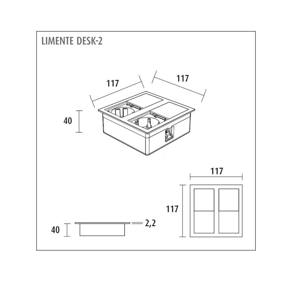 Limente Desk-2 on erittäin matalarakenteisia pistorasia (tason minimipaksuus 20 mm), joka on suunniteltu asennettavaksi pöytätasoon, hyllyihin, kalusteisiin yms. Matalan rakenteensa ja pistotulppaliitännäisen virransyötön ansiosta niitä voidaan käyttää myös irtonaisissa kalusteissa kuten pöydissä, sohvissa ja kirjahyllyissä.