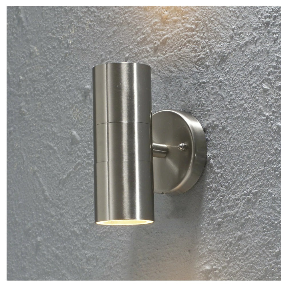 Tyylikäs ylös ja alas valaiseva ruostumattottomasta teräksestä valmistettu kohdevalaisin Modena 7571-000 kirkkailla laseilla. Valonlähteenä 2x35W (GU10). Asennus suoraan seinäpintaan. Toimitus ei sisällä valonlähdettä valoille.