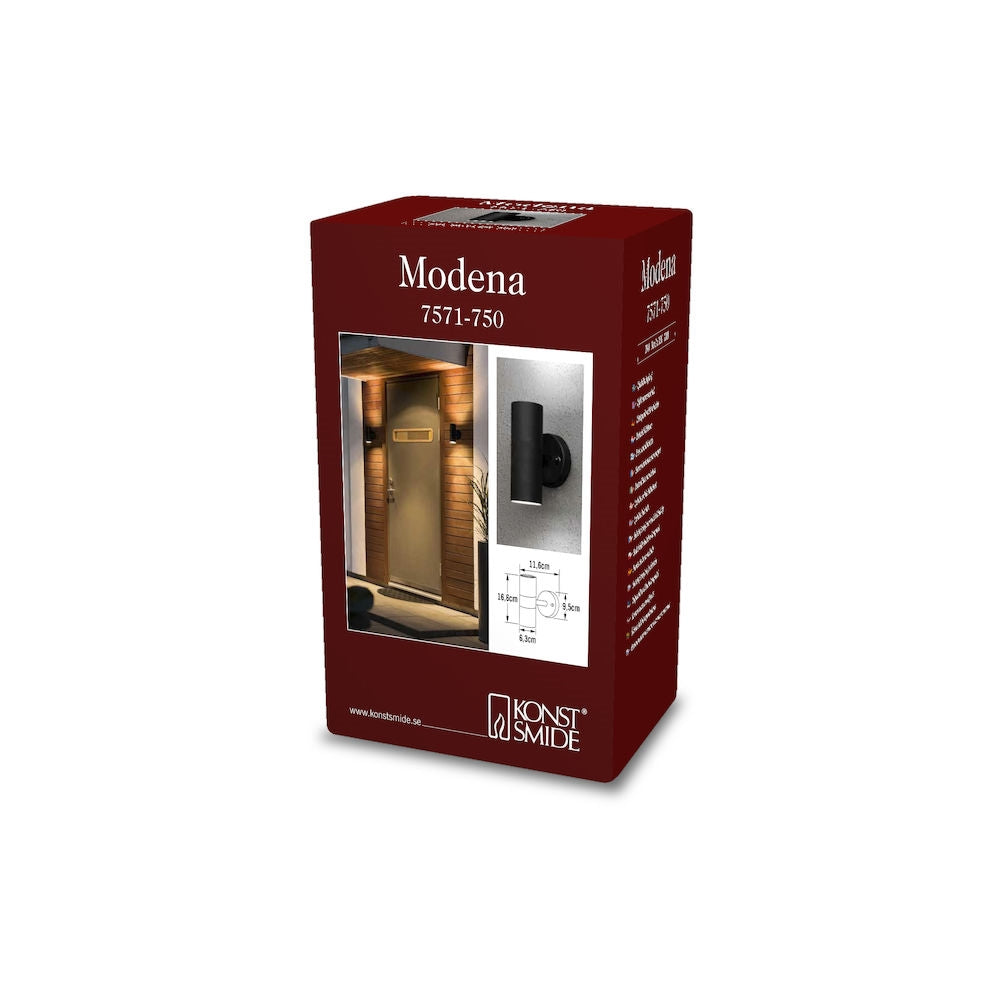 Tyylikäs ylös ja alas valaiseva musta kohdevalaisin Modena 7571-750 kirkkailla laseilla. Valonlähteenä 2x35W (GU10). Asennus suoraan seinäpintaan. Toimitus ei sisällä valonlähdettä valoille.