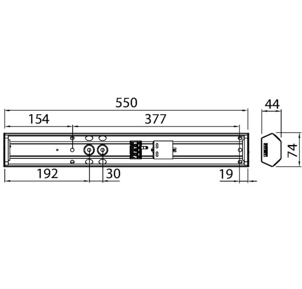 • Pinta-asennus, läpijohdotettava ja ketjutettava 4 x 2,5 mm² (pistorasialliset valaisimet) tai 3 x 2,5 mm² (pistorasiattomat valaisimet).